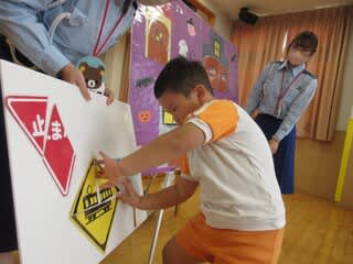 季節にあったハロウィンの絵を楽しみながら、身近な標識を学んだり