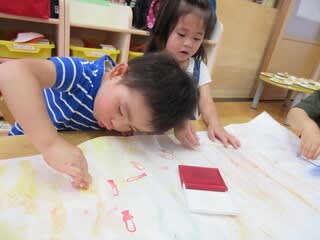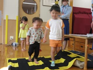 この日は、段ボールを使って電車に見立てたり、トンネルに見立てたり・・♪