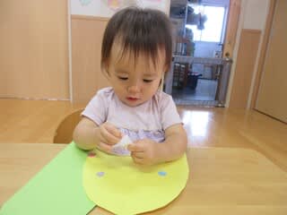 毎日の出席シールを貼るのが楽しみな1歳のお友だち♪
