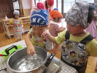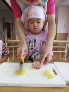 鍋に入れたり、果物の皮を剥いたり、切ってみたりと色んな体験ができたクッキングの時間