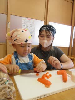 今日は一緒にクッキング。お米を研いだり、野菜を切ったりと楽しく取り組むことができました!