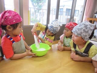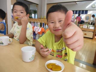 全園児、職員にもおやつに食べて貰い、ムフフと満足顔の2歳児でした