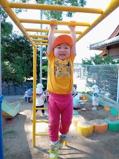 「これしてみたい」「もーいっかいする!」と雲梯をしっかり握ってぶらんぶらん