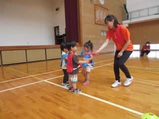 広い体育館で、徒競走やリレーの練習を中心に行いました。