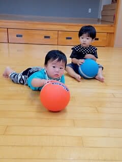 保育士がコロコロとボールを転がすと、ハイハイで ”待て待て~” と追いかけ取りにいきますが、