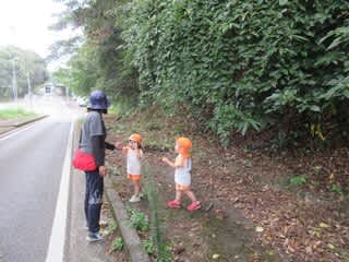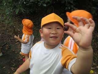 栗のイガを見つけるたびに大はしゃぎの子どもたち。