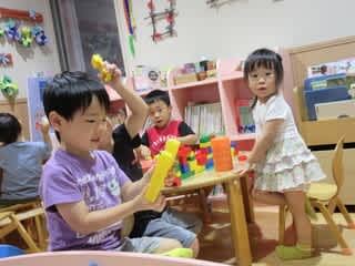 カプラや、様々なブロック類と玩具で協力したり、一人で集中したり…と
