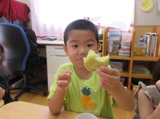 この日のおやつは、ふかし芋🍠食べてみるとほっこり甘いお芋でした(*^^*)