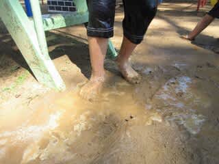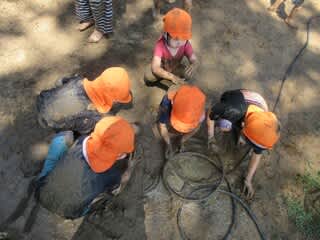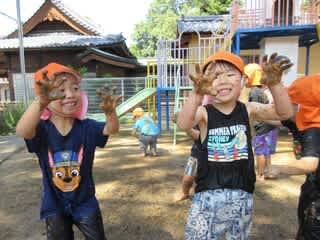 気がつくと全身泥だらけの子どもたち。感触を楽しみながら、泥あそびを十分に満喫しました!