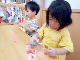 「こうかな?こうじゃない?」お友だちと協力し合う姿が見られました。