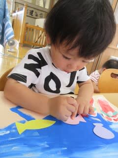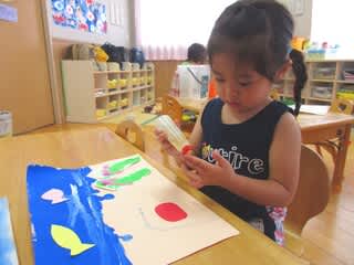2歳児さんは夏の終わりをイメージして製作をしました!