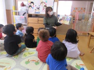 保育士からの出し物は、エプロンシアター♪誕生者も一緒に参加しましたよ。