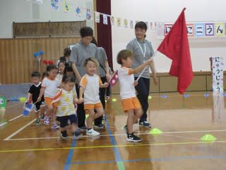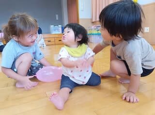 昨日のにこにこ運動会で使用した物がこの日は子どもたちのおもちゃに大変身。