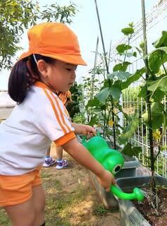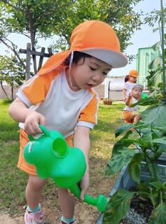 収穫はまだまだ先ですが、野菜ができるまでの過程を日々目にしている子ども達です。