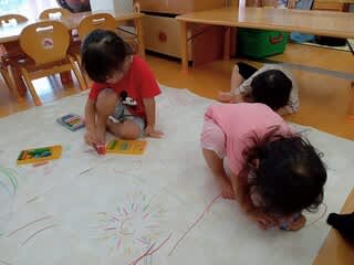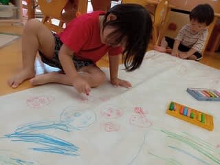 今回は、大きな紙にみんなでお絵描き(^^♪
