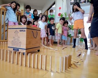 カタカタと倒れてくるカプラのドミノを食い入るように見る子どもたちでした(*^^*)