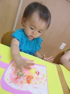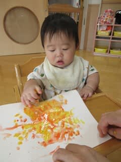 手のひらに絵の具をつけると、ペタペタ✋
