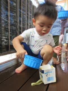 今回は牛乳パックを使って遊びました