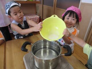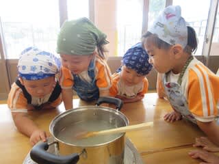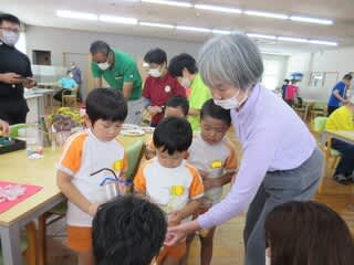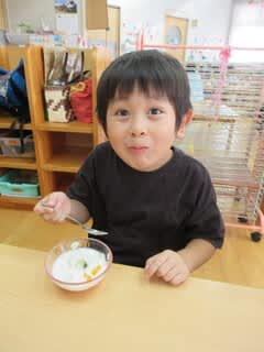 固まるか心配していた子どもたちでしたが、完成したおやつを見て「すごーい!!」「固まった!」と大喜び(^^♪