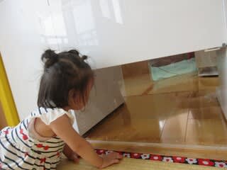 子どもたちは、自分の顔が反射して映るので、確認に(?)来ています♪