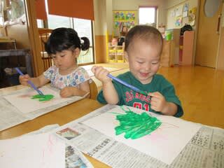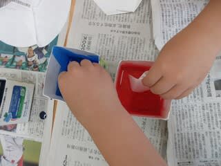 じわじわと絵の具が染み込んでいく様子に歓声をあげていた子どもたちでした(^^♪