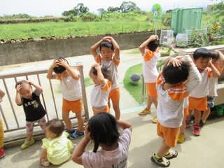 今日は、地震についての避難訓練を行いました。
