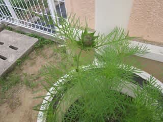 コスモスの蕾でした。春の寒暖差と秋の寒暖差を間違えたのかな?