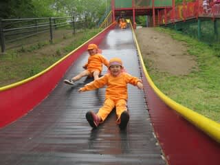 梯子の階段もどんどん登って、滑り台を滑ります♪