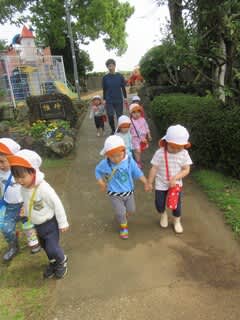 今年度初めての園外保育。予定の時間よりも短かったですが、遊ぶことができました(^^♪