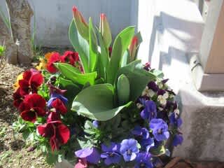 プランターに植えているチューリップや先日植樹した桜が開花目前です(^^♪
