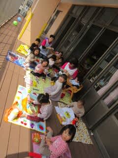 お弁当を持ってテラスへ行くと、風船遊び♪