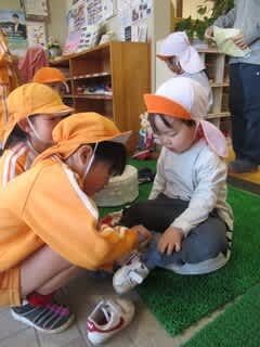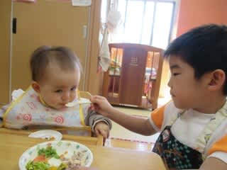 5歳児さんは、進んで小さいお友達のお世話をしてくれます。