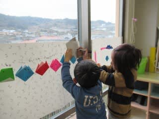 大きな紙に、貼ったり、書いたり・・・自由自在に使って楽しく過ごすことが出来ました。