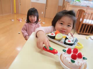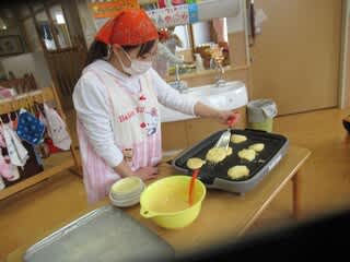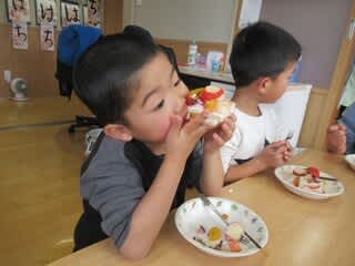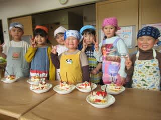 メニューは、3~5歳児はケーキのデコレーション、1・2歳児はホットケーキ♡