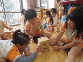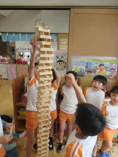 みんなで協力しながら、自分たちの背丈よりも高いタワーを作ったり、