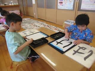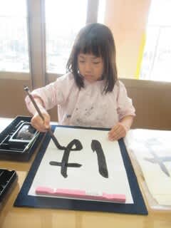 心を落ち着けて書に親しんでいるこのひと時は、凛々しい表情の子どもたちです。