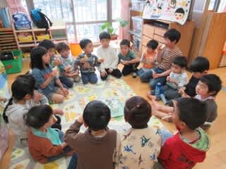 ということで、久しぶりに1歳児から5歳児みんなで輪になって