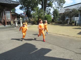 神社の周りをみんなで颯爽と駆け抜けます。