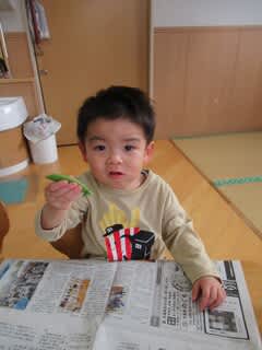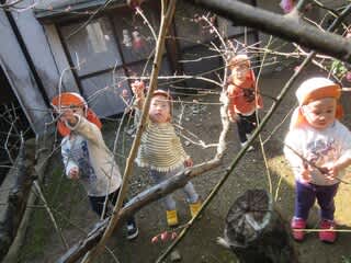先日から、神社の裏にある梅の花を探しに行っていた2歳児さん。
