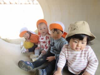 天気が良い日は、0歳児さんも園庭へ出て遊んでいます