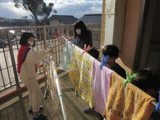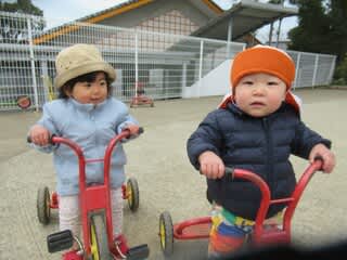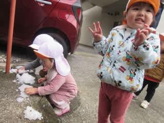 まだまだ残る寒さと共に、今朝は元気に登園してきた子どもたちです。