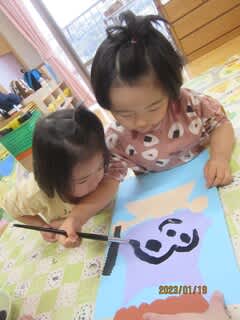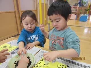 しっかり絵の具をつけて、輪になるように集中して行うことができました!