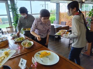 バイキングでたくさんの料理があり、皆さんどれを食べようかワクワク