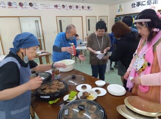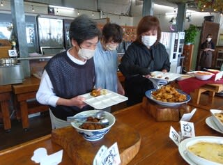 お楽しみの昼食は出店風の料理がバイキング形式で並んでおり