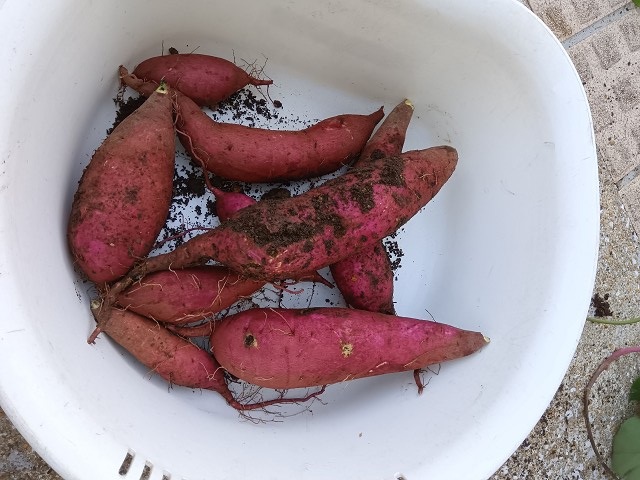花壇に植えていたさつまいもの苗の収穫を行いました!