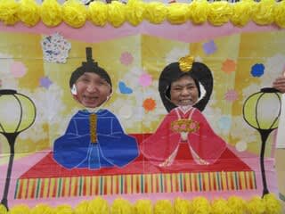 先日から生活介護で作成していたひな祭りパネルが完成し🎎