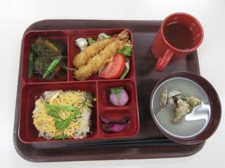 昼食はちらし寿司と桜もちとひな祭りのメニューでした