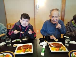 皆で乾杯をしてハンバーグ定食を頂きました♪