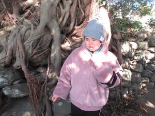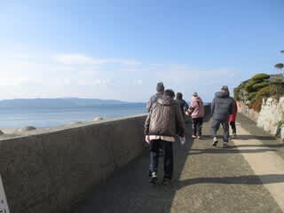 海沿いをゆっくり歩き、「船がいっぱいねー」「あったかいねー」と言いながら