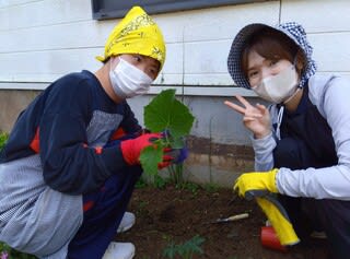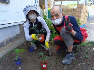 先日花壇にきゅうり・オクラ・ミニトマトの苗植えを実施しました♪